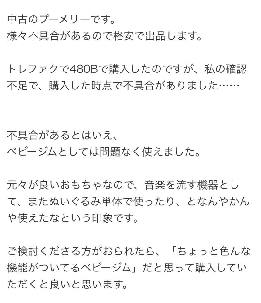 元々が良いおもちゃなので、音楽を流す機器として、またぬいぐるみ単体で使ったり、となんやかんや使えたなという印象です。