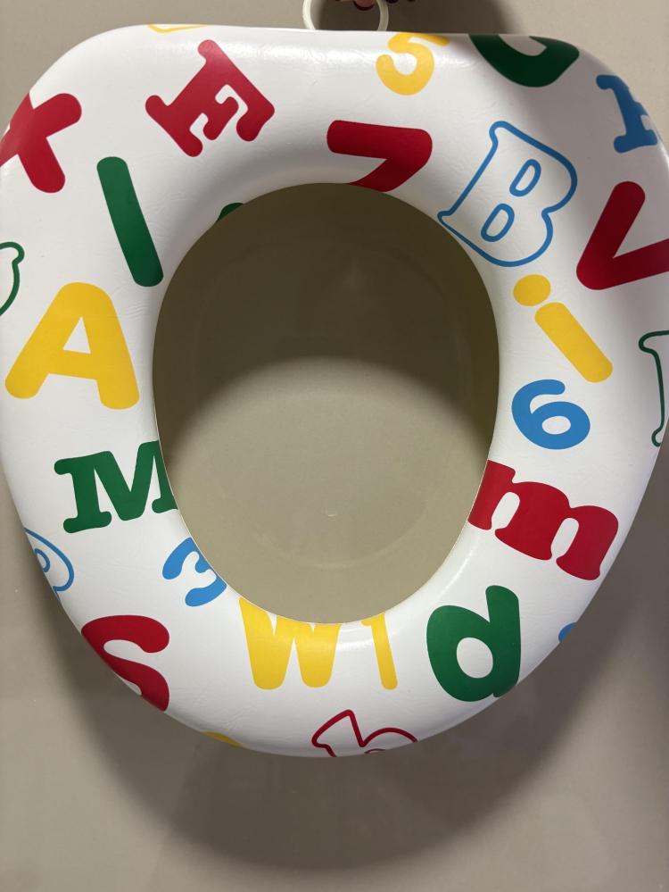 補助便座です。こちらへ持ってきてすぐにもう使わなくなってしまったのでほとんど使ってはいませんが、使用した事はあるため使用感が気にならない方は、ぜひご検討ください。