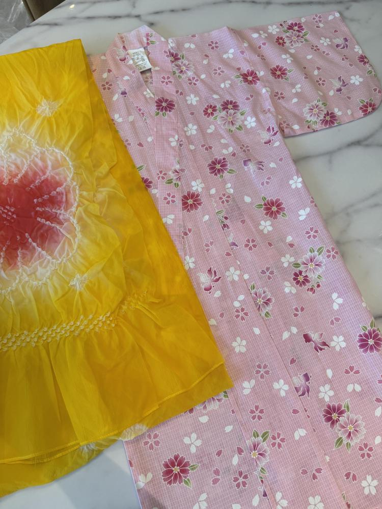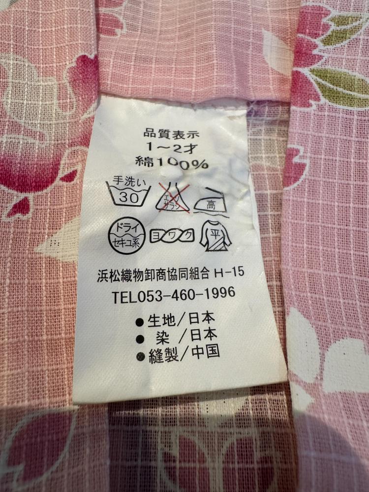 日本のお店で購入し、一度着用しました。1-3歳くらい用。帯付きです。