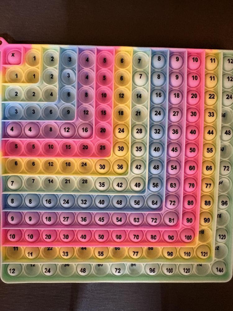 子供が夢中になって遊びながら学べるプチプチの掛け算バージョンです。裏は足し算バージョンです。